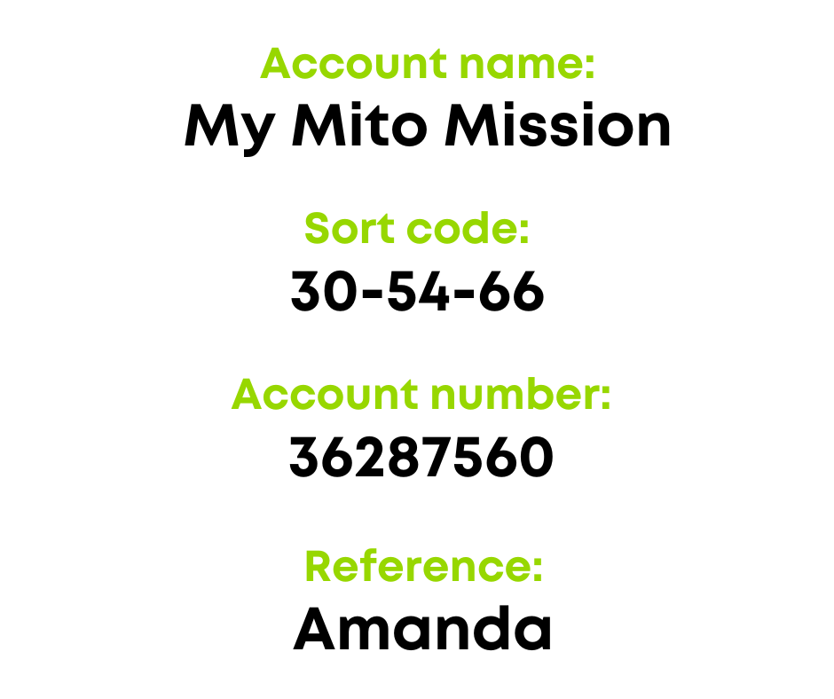 Spreading the word, following, sharing, as well as donating and raising funds are all really helpful and valued. From running a race to hosting a bake sale, homing a collecting can to giving out Amanda’s Mito Mission leaflets – there are so many ways in which you can get involved.