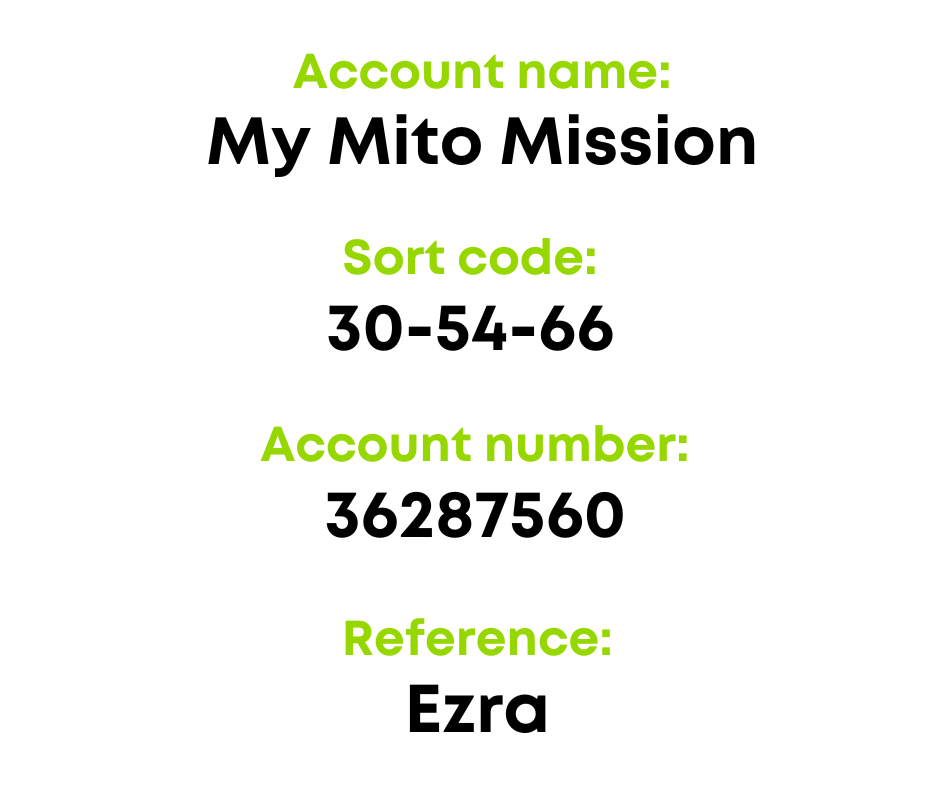 Spreading the word, following, sharing, as well as donating and raising funds are all really helpful and valued. From running a race to holding a bake sale, hosting a collecting can to giving out Ezra’s Mito Mission leaflets – there are so many ways in which you can get involved.