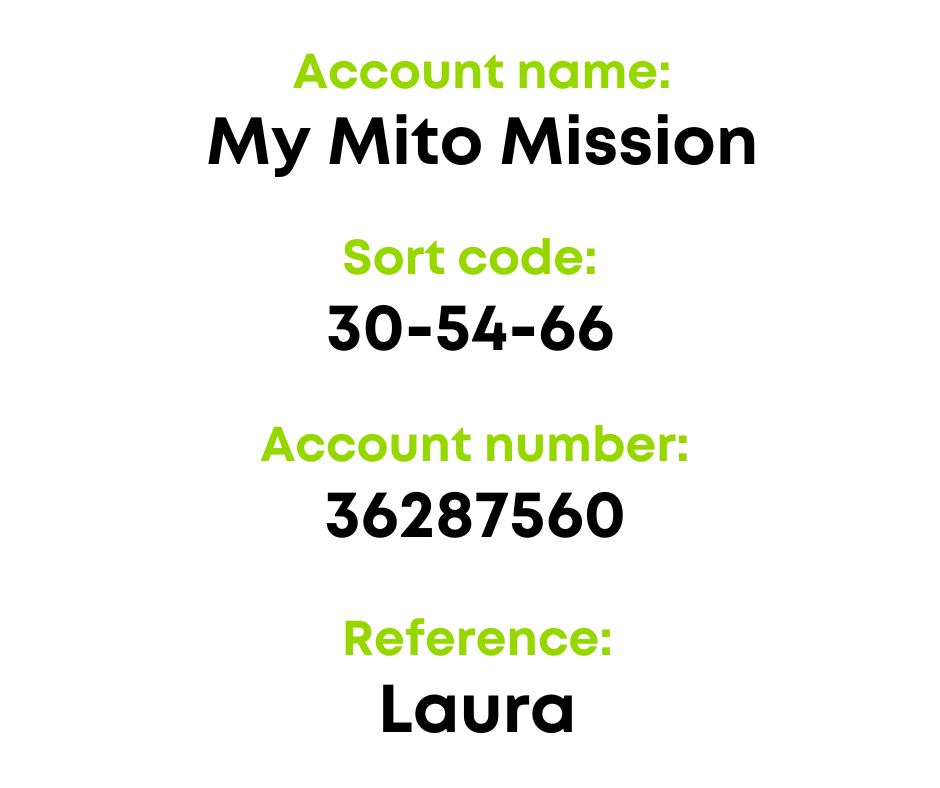 Spreading the word, following, sharing, as well as donating and raising funds are all really helpful and valued. From running a race to hosting a bake sale, homing a collecting can to giving out Laura’s Mito Mission leaflets – there are so many ways in which you can get involved.